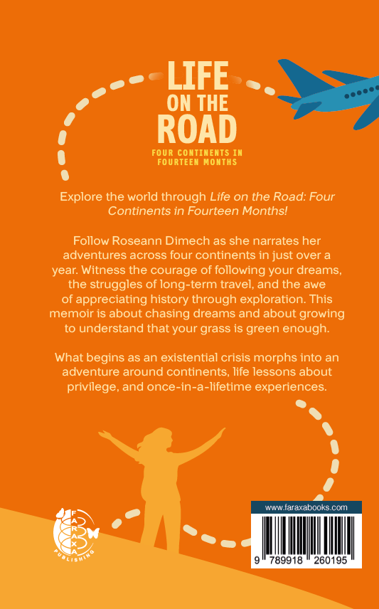 Follow Roseann Dimech as she narrates her adventures across four continents in just over a year. Witness the courage of following your dreams, the struggles of long-term travel, and the awe of appreciating history through exploration. This memoir is about chasing dreams and about growing to understand that your grass is green enough.